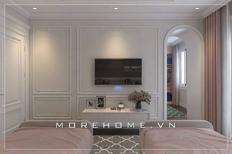 Thiết kế mẫu kệ tivi gỗ óc chó tân cổ điển đẹp, sang trọng cho phòng ngủ biệt thự