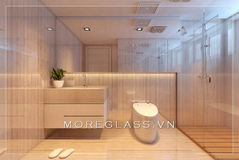 Vách tắm kính có độ cường lực 12 ly sẽ tạo ra cho bạn và gia đình một không gian tắm thoải mái.